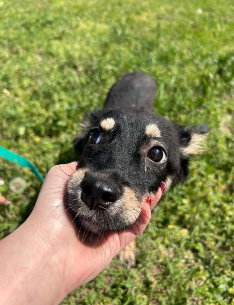 Назвали его так за его окрас, его мордочка разделена на два цвета — белый и чёрный.😍