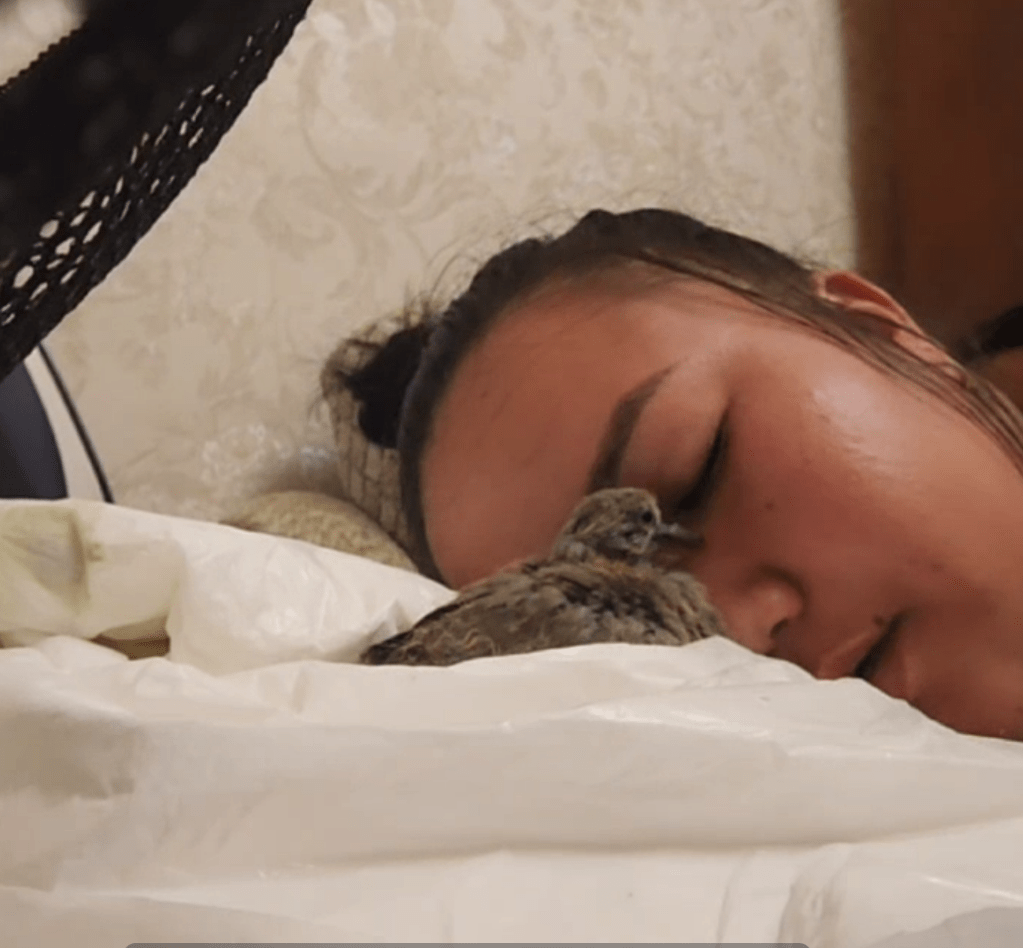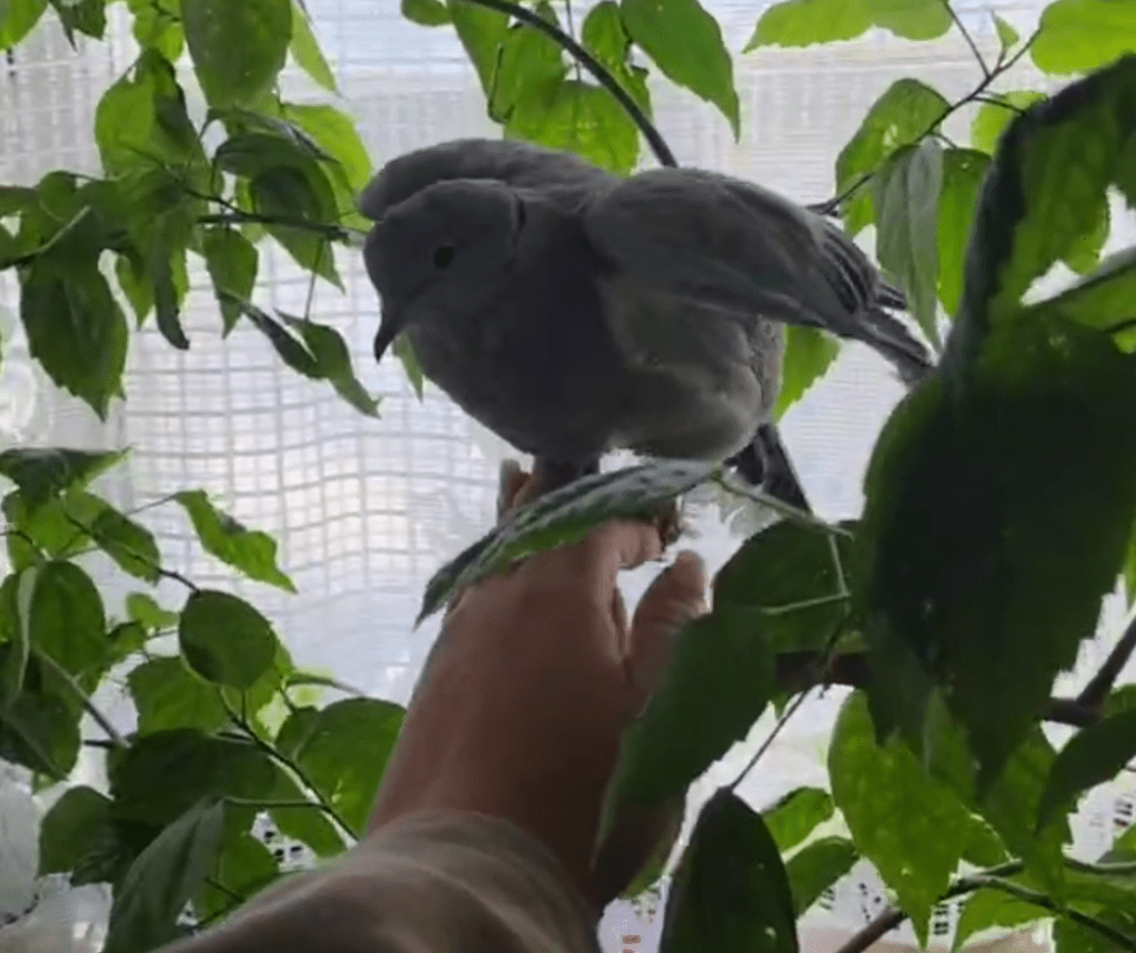 Сейчас Цыпка так и живёт у меня, и улетать не собирается, несмотря на то, что я не удерживаю её, часто она летает по двору, по деревьям, но всегда возвращается.💞 Вот так уж она ко мне привыкла…