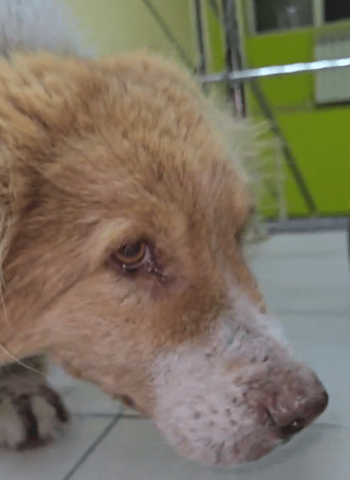 Одна бедося, зовут Рыжик, ему где-то лет 10-15. Состояние кожи просто плакать…