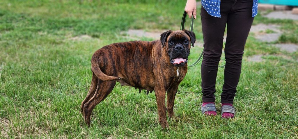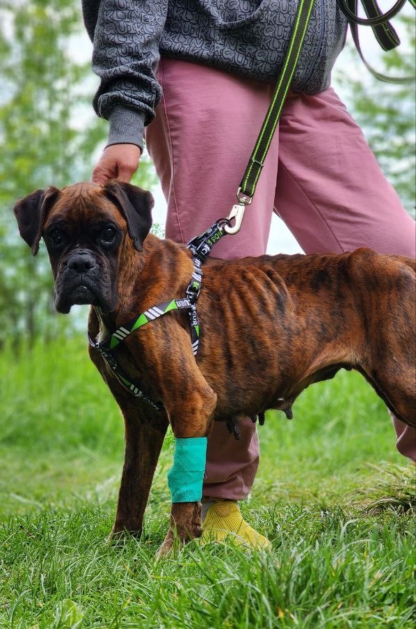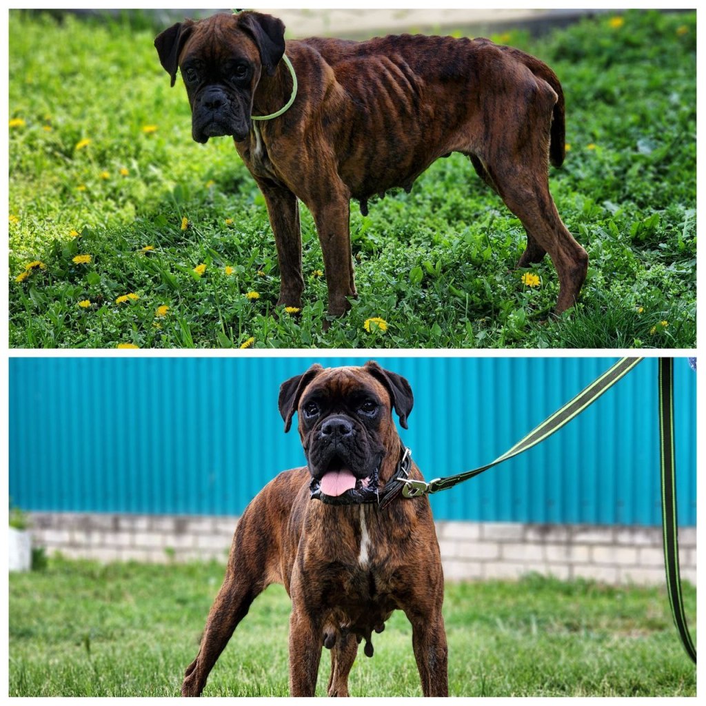 Боксёрку Тейси подобрали, когда она была в ужасном состоянии… Она была очень сильно истощена, также, было понятно, что она много раз рожала, видно разведенцы использовали её для зарабатывания денег, а когда собака заболела, решили, что она больше им не нужна…😒 У Тейси был хронический пироплазмоз, её укусил клещ и начала разрушаться печень, к счастью, ей успели помочь, иначе она бы умерла уже в скором времени… Но благодаря своевременно оказанной помощи, начатому лечению, Тейси стала восстанавливаться, параллельно с этим набирая вес.